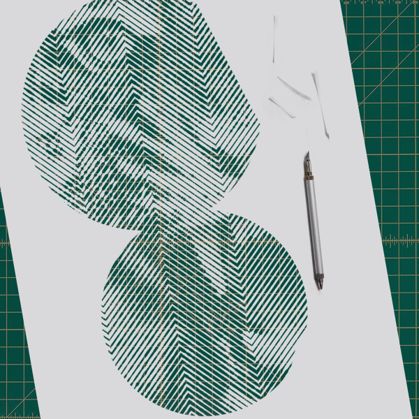 A papercut portrait formed through precise diagonal cuts that reveal a dark underlying layer, using negative space and subtle visual vibration to present identity as layered and revealed through removal rather than addition.